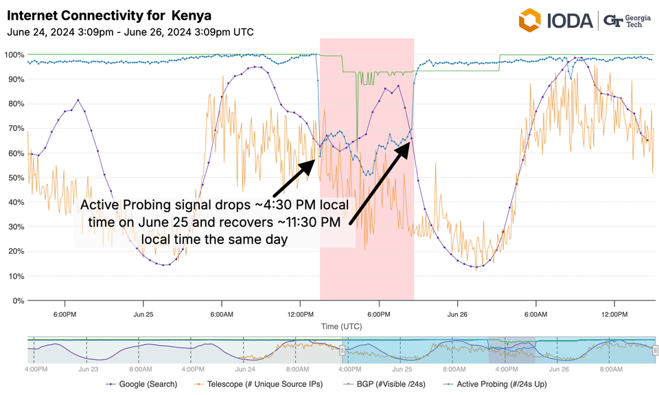 In this analysis, we investigate the temporal nature of the June 25, 2024 Internet disruption in Kenya by comparing it to two previous subsea cable outages in 2024 and comparing it to our